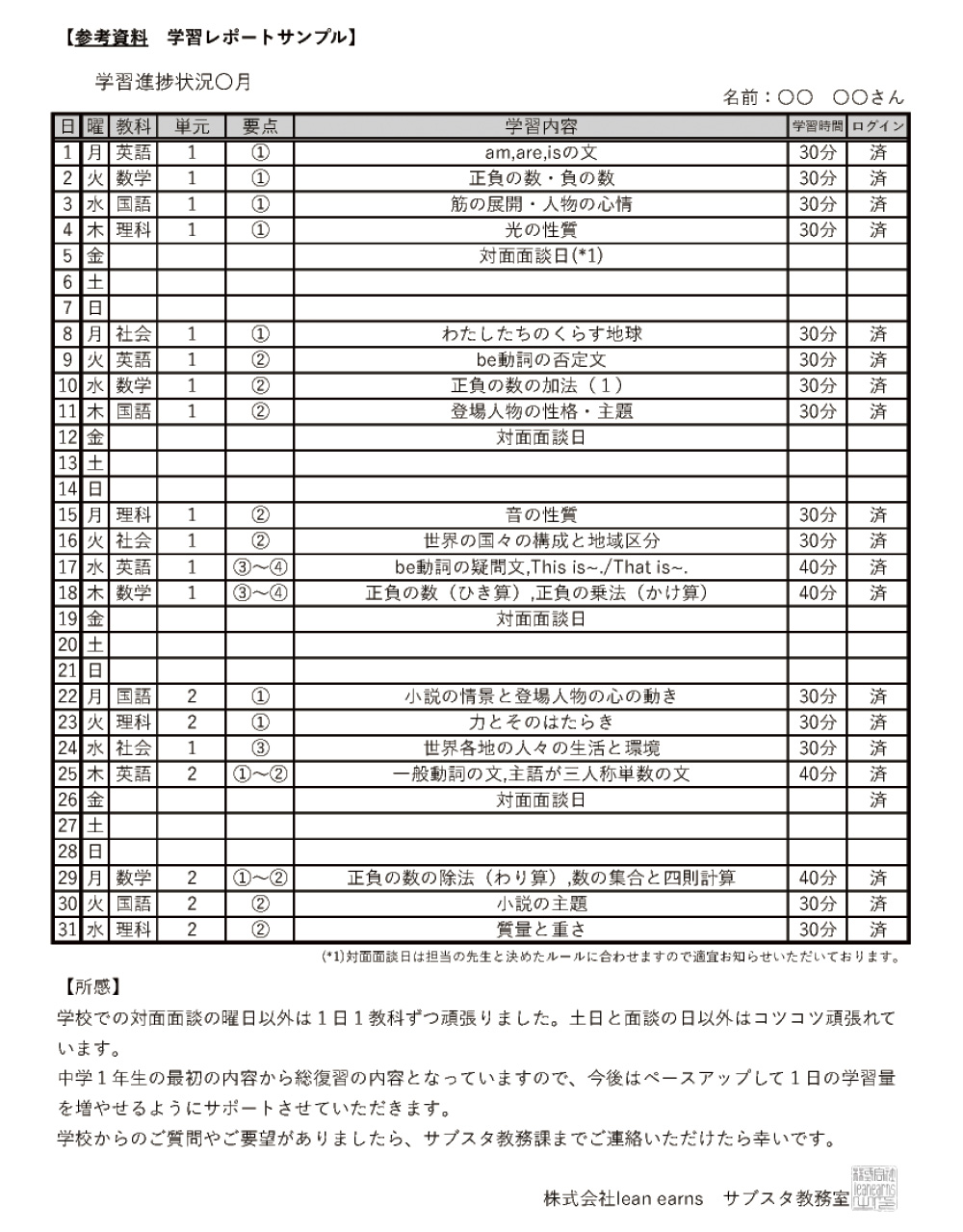 出席認定を取るためには、保護者様と学校との協力関係が不可欠です。翔志学園では在籍校と連携し、当キャンパスでの活動を報告していきます。また、毎月の学習進捗レポートを作成し、学校と共有することによって、出席扱いを全面的にバックアップいたします。